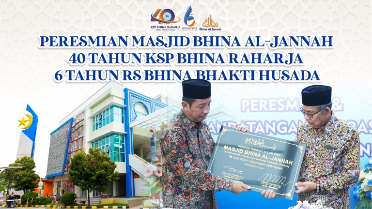 Sabtu, 8 Juni 2024 telah diresmikan Masjid Bhina Al-Jannah yang terletak di area RS Bhina Bhakti Husada. Acara Peresmian Masjid Bhina Al-Jannah,  Tasyakuran 40 tahun KSP Bhina Raharja dan 6 tahun RS Bhina Bhakti Husada,  dihadiri oleh Bupati Rembang Bapak H. Abdul Hafidz, S.Pd.I Bersama Forkopinda, Ketua Bhina Group Bapak H. Atna Tukiman, S.E Bersama Direksi, Direktur  RS Bhina Bhakti Husada DR. Muhammad Syahirul Alim, Sp. PD Bersama Manajemen. Acara dimulai dengan sambutan, pembacaan doa oleh para ulama, penandatanganan berita acara, penandatanganan prasasti oleh Ketua Bhina Group Bapak H. Atna Tukiman, S.E dan Bupati Rembang Bapak H. Abdul Hafidz, S.Pd.I dilanjutkan dengan gunting pita serta pemukulan bedug sebagai simbolis masjid telah diresmikan. Keberadaan Masjid Al-Jannah tidak hanya menunjang fasilitas ibadah bagi pengunjung rumah sakit Bhina Bhakti Husada tetapi masyarakat umum juga bisa memanfaatkannya. Setelah peresmian Masjid Bhina Al-Jannah dilanjutkan BHINA RAHARJA BERSHOLAWAT Bersama Habib Muchsin Al Hamid (Jember), dan KH. Abdurro’uf Maimoen (Sarang). Acara disambut dengan antusias oleh masyarakat umum, semoga dengan adanya masjid Al-Jannah bermanfaat untuk menopang kegiatan ibadah dan syi’ar Islam.