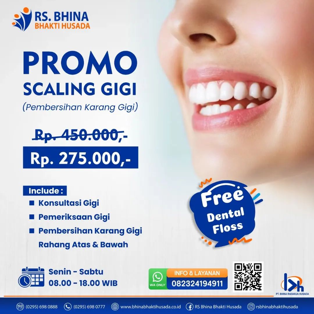 PROMO SCALING GIGI Banyak pilihan perawatan gigi di dokter gigi yang sebaiknya secara rutin Anda lakukan, karena menjaga kesehatan gigi, gusi & mulut itu tak cukup hanya menggosok gigi saja. Salah satu cara paling efektif adalah Scaling treatment (pembersihan karang gigi). Kapankah kita perlu melakukan Scaling gigi ? Scaling dapat membersihkan karang gigi secara …